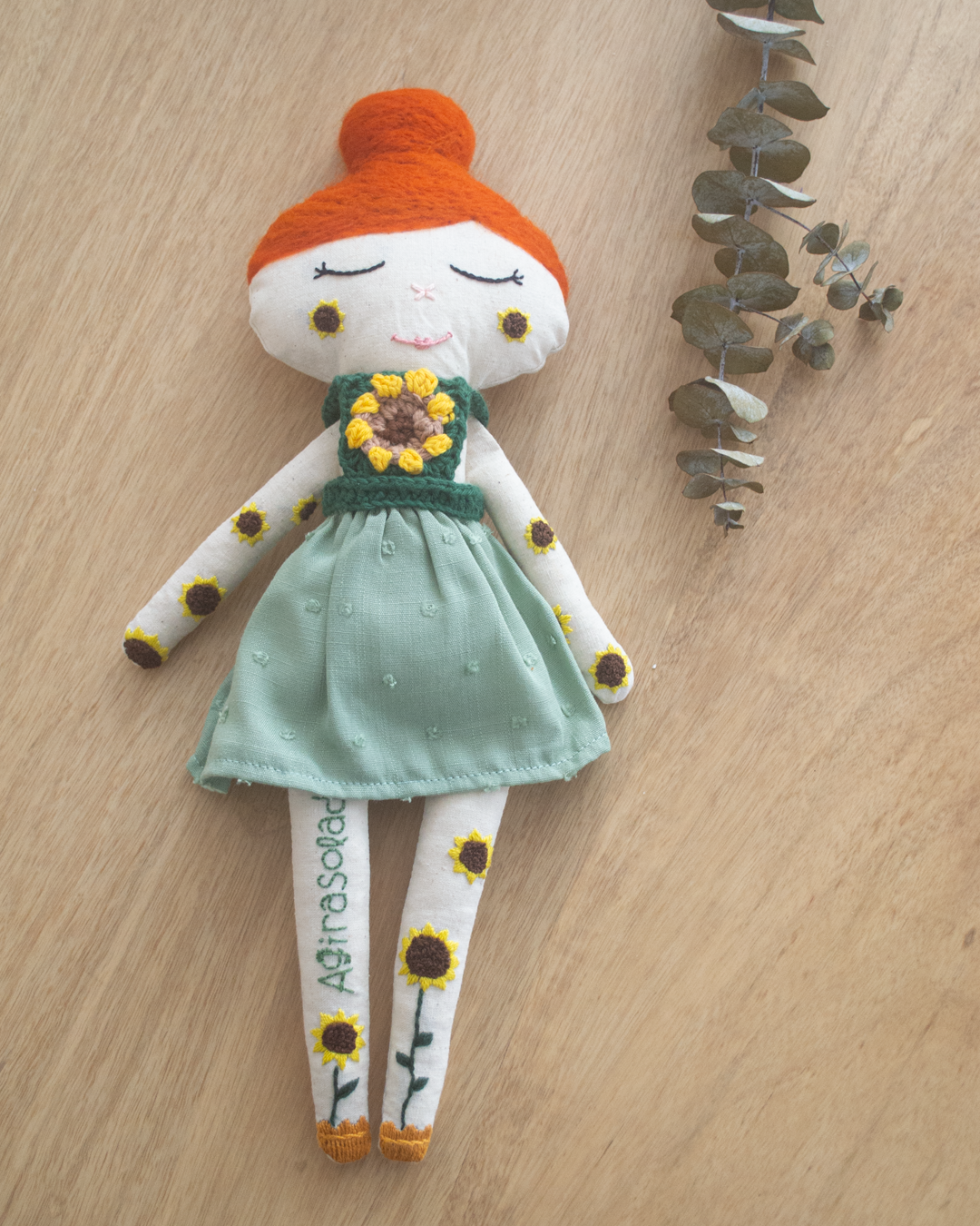 Muñeca elaborada y bordada 100% a mano. Un regalo ideal para sorprender a grandes y chicos desde los 0 a los 99 años. Material 100% algodón, vestido de lino, tejido y bordado con hilos de alta calidad.